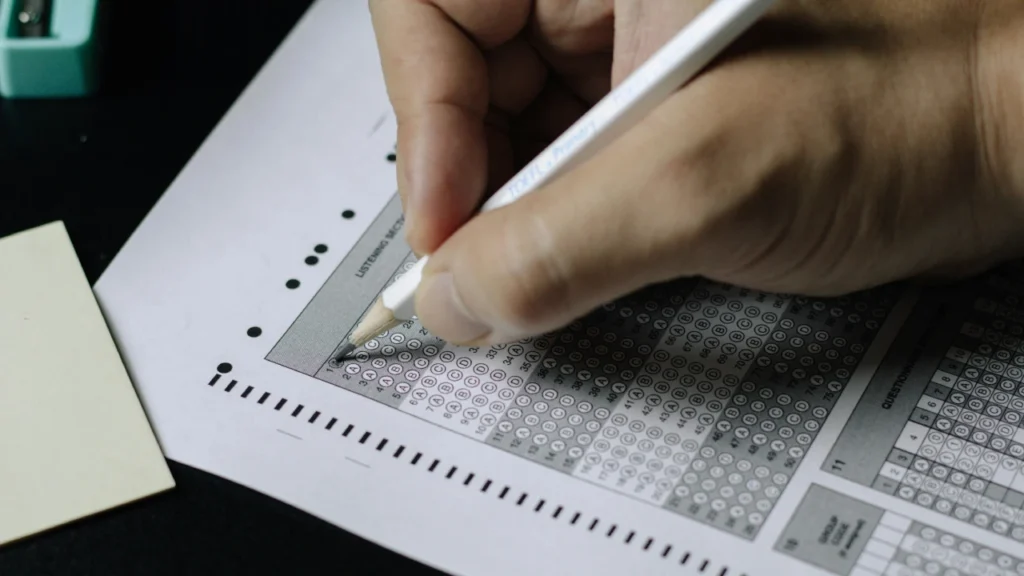 Students preparing for standardized english test for university admission or immigration.